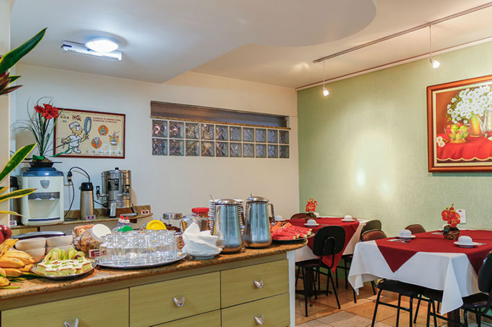 O espaço , tranquilo, aconchegante e com um ótimo atendimento, o deixará à vontade para desfrutar a variedade de nosso buffet. Oferecemos produtos caseiros, preparados no próprio hotel, como bolos, pães, diversos salgados e doces.